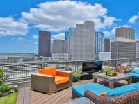 Take in the view of Houston's skyline with the spectacular two story wall of windows found at the Rise Lofts. These contemporary residences have steel staircases leading to a loft bedroom with open views of the living area. Concrete flooring and an open kitchen round out the unique features of these luxury lofts.