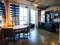 Take in the view of Houston's skyline with the spectacular two story wall of windows found at the Rise Lofts. These contemporary residences have steel staircases leading to a loft bedroom with open views of the living area. Concrete flooring and an open kitchen round out the unique features of these luxury lofts.